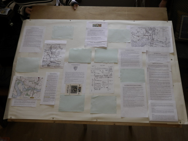 L’idée du panneau était lancée mais, entre recherches, retards administratifs et autres aléas de la vie, il nous a fallu un an pour le finaliser. Un an cela peut paraître long pour un simple panneau…il faut savoir qu’entre temps était venue se greffer l’idée d’y adjoindre un petit monument sur lequel serait gravé les noms des régiments ou divisions ayant participé à cette bataille.